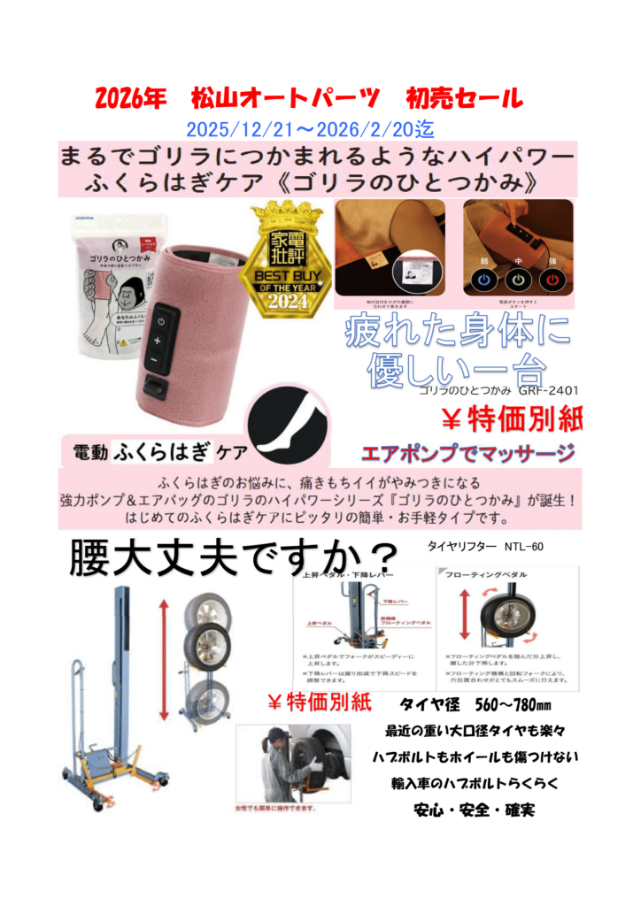 2026初売り 電動ふくらはぎケア、タイヤリフター