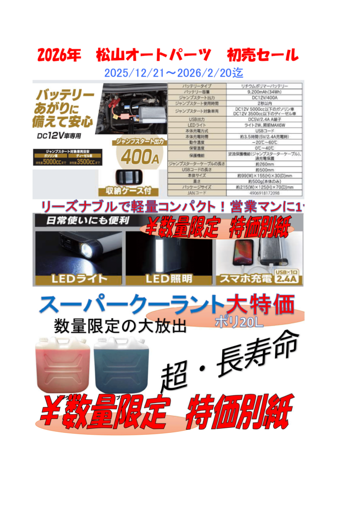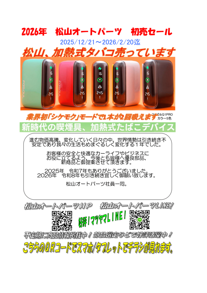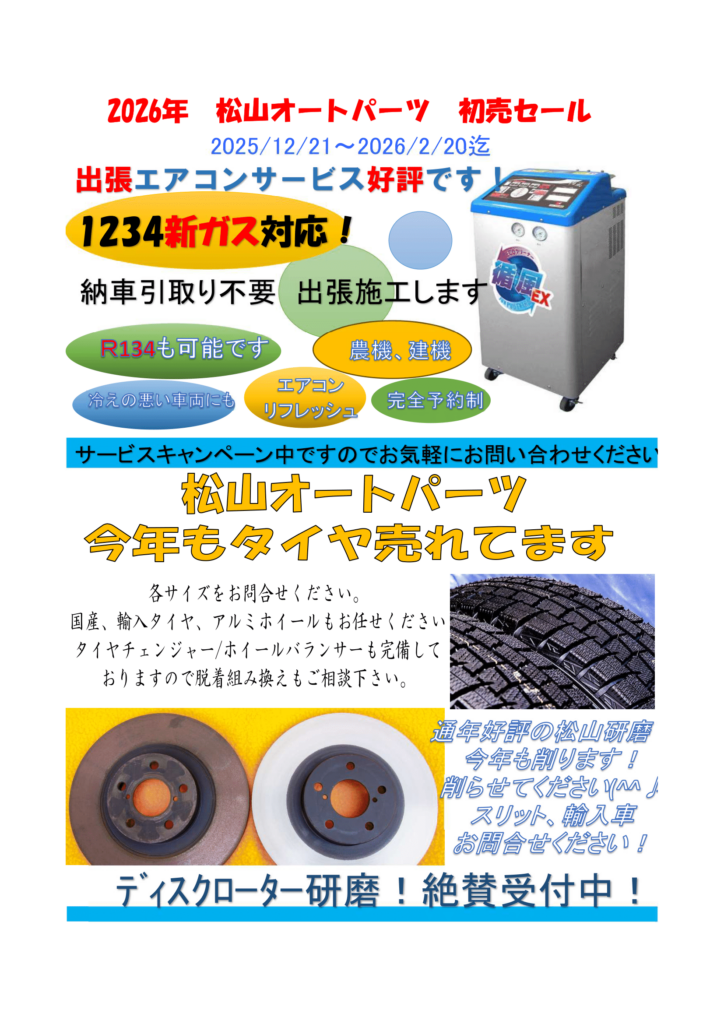 2026初売り 出張エアコンサービス、ローター研磨等案内